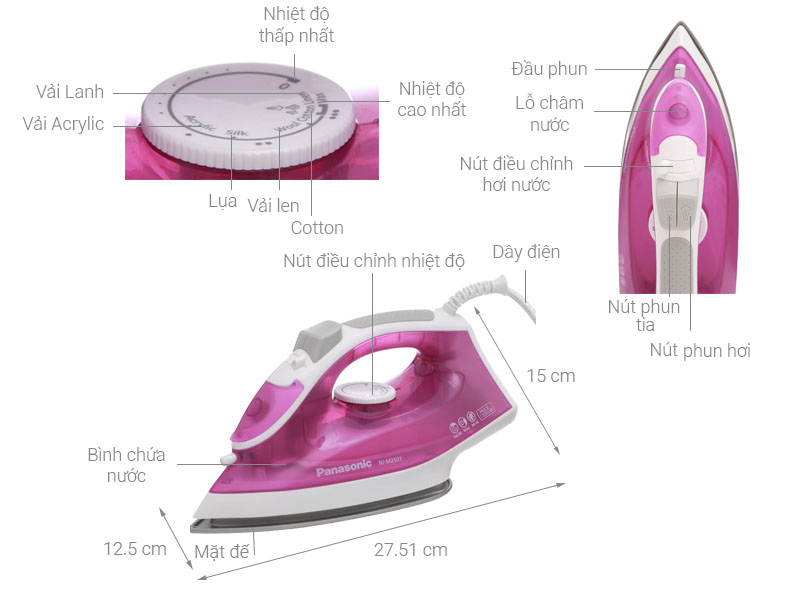 Bàn ủi hơi nước Panasonic NI-M250TPRA có thiết kế đẹp gọn, tiện dụng, giúp chị em nội trợ hoàn thành công việc ủi đồ dễ dàng.