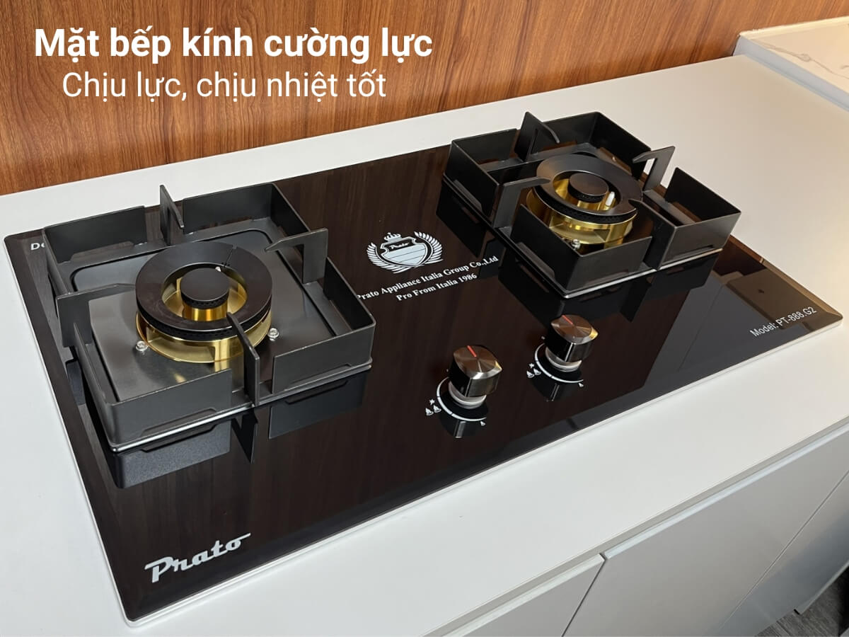 Bếp gas Prato PT-888.G2 được trang bị mặt kính dày dặn, với khả năng chịu nhiệt và chịu lực tốt. Mặt kính có thể chịu được nhiệt độ cao cũng như sự sốc nhiệt trong quá trình nấu nướng, hầu như không bị biến dạng hay nứt vỡ dưới tác động nhiệt độ. Bên cạnh đó là khả năng chịu được trọng lượng lớn và những va chạm với dụng cụ nấu nướng, cho tuổi thọ sử dụng bền lâu. Với chất liệu mặt kính, việc vệ sinh, lau chùi bếp cũng dễ dàng và hiệu quả hơn.