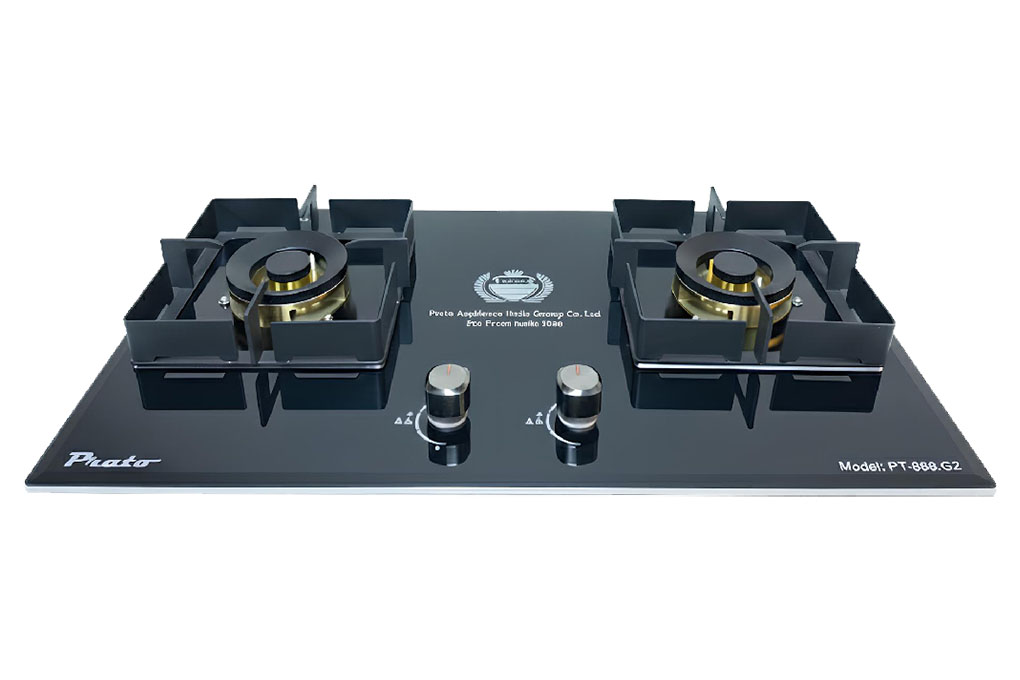 Bếp gas Prato PT-888.G2 sở hữu thiết kế lắp âm sang trọng, mặt kính đen nhẵn bóng và bo viền hợp kim nhôm tăng vẻ thẩm mỹ cho không gian bếp. 2 lò nấu giúp nấu nướng nhanh chóng, tiện lợi. Đầu đốt bằng đồng chịu nhiệt tốt, hạn chế ăn mòn, độ bền cao. Hệ thống đánh lửa IC bằng Pin hiện đại, đánh lửa siêu nhanh và an toàn. Kiềng bếp bằng gang bền bỉ, tích hợp vòng chắn gió giúp đun nấu nhanh và tiết kiệm gas. Ngoài ra còn có 2 đầu hâm dễ dàng chỉnh lửa nhỏ để hâm nóng hoặc ninh hầm. Đặc biệt là chức năng ngắt gas tự động khi có sự cố gió lùa, nước tràn, bảo vệ an toàn tối đa cho người dùng.