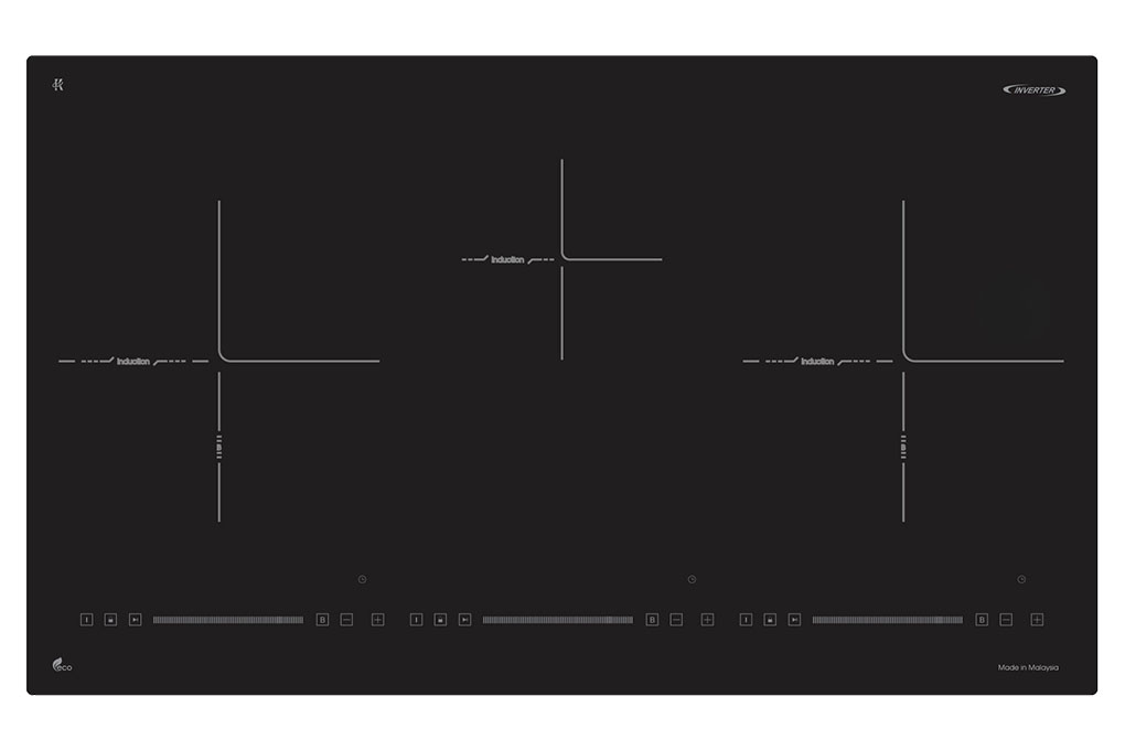 3 vùng nấu bao gồm 2 vùng nấu lớn 1 vùng nấu nhỏ thiết kế cùng bảng điều khiển riêng biệt cho từng vùng nấu. Thiết kế thông minh giúp người dùng có thể Bật/Tắt từng vùng nấu riêng mỗi khi sử dụng. Đây là điểm khác biệt so với một số dòng bếp từ chỉ dùng 1 phím Bật/Tắt.