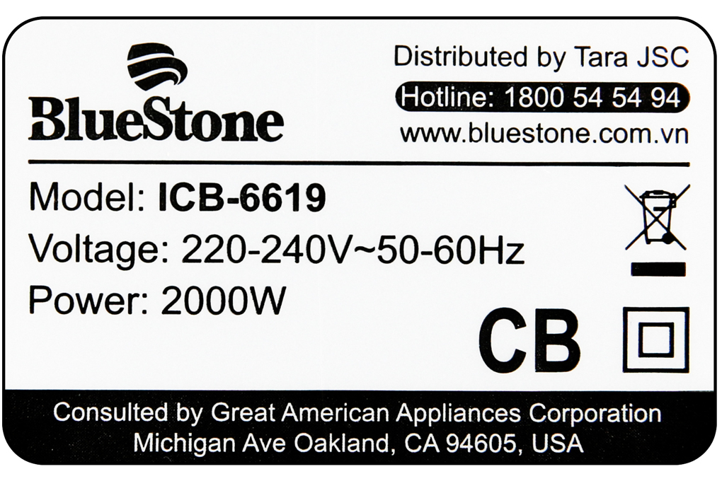 Công suất 2000 W - Bếp từ BlueStone ICB-6619