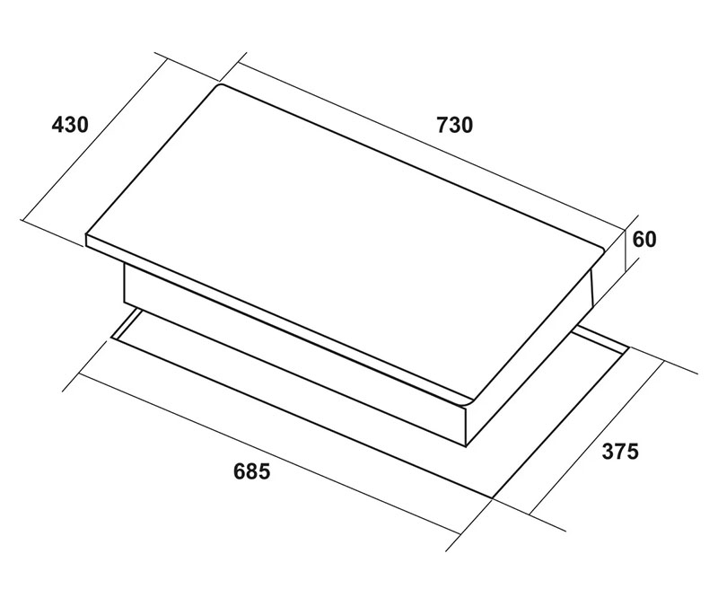 Kích thước lắp đặt: 68.5cm x 37.5cm (Dài x rộng)