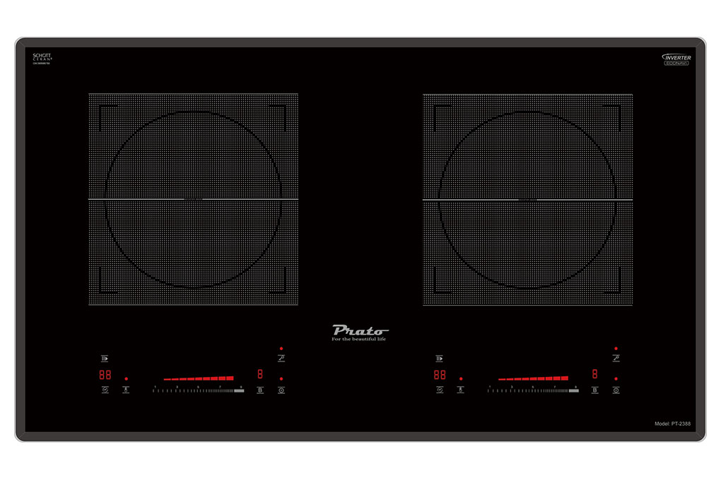 Bếp từ Prato này được thiết kế với 2 vùng nấu tổng công suất 5.2 kW, công suất mỗi vùng nấu tối đa đạt 2.6kW. Với 2 vùng nấu cùng công suất lớn, Bếp từ Prato PT-2388 đem đến khả năng nấu nướng nhanh chóng, tiện lợi, tiết kiệm thời gian cho người nội trợ.
