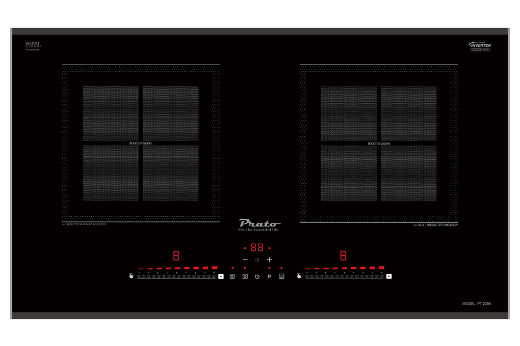 Bếp từ Prato PT-2396 là sản phẩm bếp từ cao cấp đến từ thương hiệu Prato. Bếp từ Prato PT-2396 có thiết kế hiện đại với 2 vùng nấu, mặt kính Schott Ceran cao cấp và được lắp âm tiết kiệm diện tích với đa dạng tính đăng được tích hợp, giúp người dùng có những trải nghiệm tốt nhất. Đây sẽ là lựa chọn không thể tuyệt vời hơn cho những người nội trợ yêu thích sự tiện lợi và an toàn trong nấu nướng.
