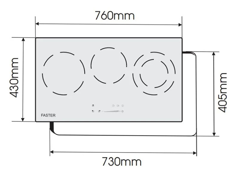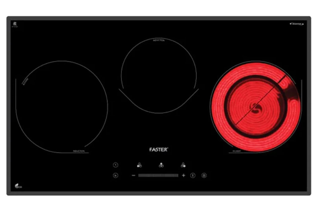 Bếp điện từ Faster FS 713HI Plus gồm 3 vùng nấu với tổng công suất 5700W. Vùng nấu từ trái có công suất tối đa là 2000W khi kích hoạt tính năng nấu nhanh Booster công suất lên tới 2300W. Vùng nấu từ giữa có công suất tối đa là 1500W khi kích hoạt tính năng nấu nhanh Booster công suất lên tới 1800W. Vùng nấu hồng ngoại phải trang bị mâm nhiệt E.G.O Hi-Light 02 vòng nhiệt với công suất lần lượt là 1100W và 2200W.