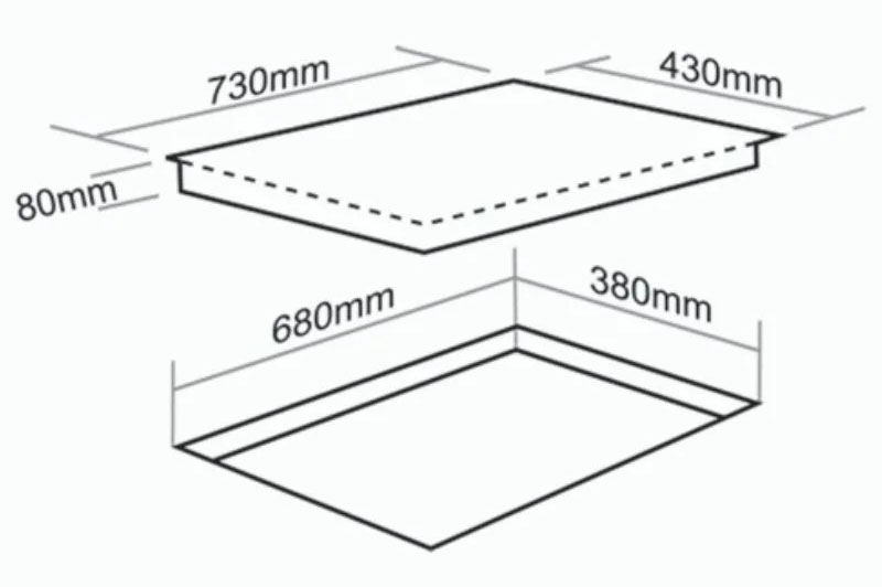 | Kích thước bếp (D x R x C) | 730 x 430 x 80 mm |