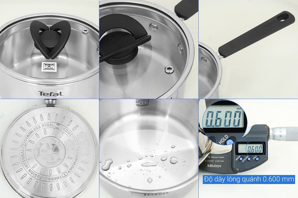 Độ dày: Nồi 24 cm: 0.56 mm, Nồi 20 cm: 0.61 mm, Quánh: 0.6 mm