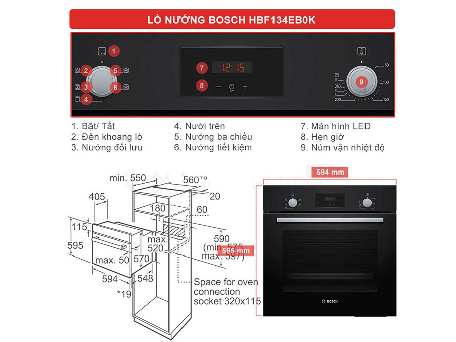 Lò nướng âm Bosch HBF134EB0K có dung tích 66 lít cùng tính năng nướng đa dạng và khả năng tiết kiệm năng lượng sẽ giúp việc nấu nướng của gia đình bạn trở nên nhanh chóng, dễ dàng và tiện lợi hơn bao giờ hết.