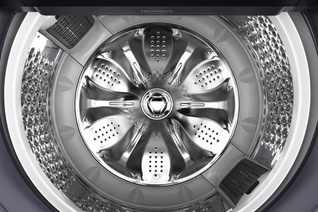Lồng giặt kết hợp nhựa và thép không gỉ vừa nhẹ, vừa bền, hạn chế bám cặn bẩn và giúp duy trì độ sạch trong suốt quá trình sử dụng.