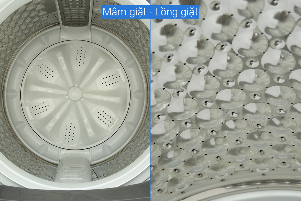 – Lồng giặt làm bằng thép không gỉ có độ bóng cao, chống oxy hóa, chống ăn mòn, được gia công tinh tế, có nhiều lỗ nhỏ giúp quá trình giặt giũ trơn tru, hiệu quả.