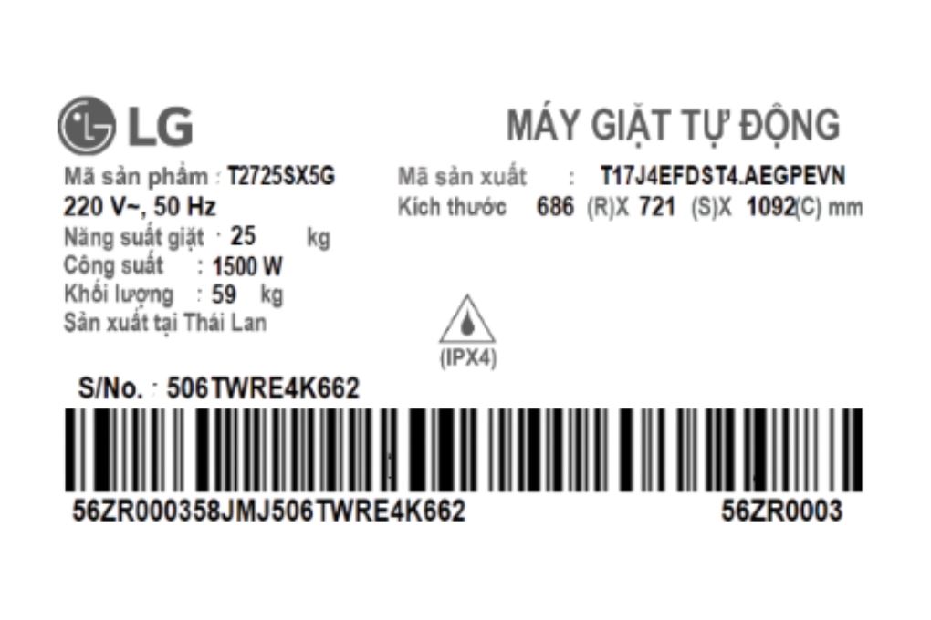 Máy giặt LG Inverter 25kg T2725SX5G là lựa chọn tuyệt vời cho gia đình đông người với công nghệ giặt thông minh, tiết kiệm thời gian và điện năng và các tính năng tiện ích như Steam diệt khuẩn, kết nối LG ThinQ. Sản phẩm này không chỉ giúp giặt giũ nhanh chóng mà còn bảo vệ sức khỏe của cả gia đình, mang lại trải nghiệm giặt giũ tiện lợi và hiệu quả trong từng lần sử dụng.