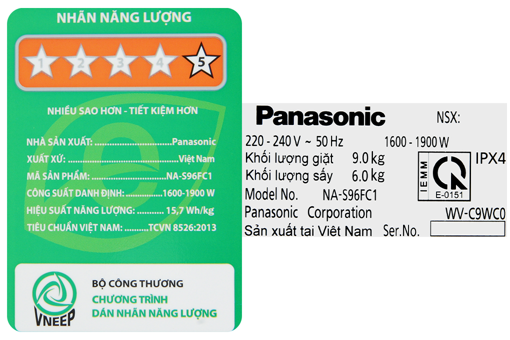 – Máy giặt sấy Panasonic này có khối lượng giặt 9 kg và sấy tối đa 6 kg sử dụng phù hợp cho các gia đình 3 – 5 thành viên