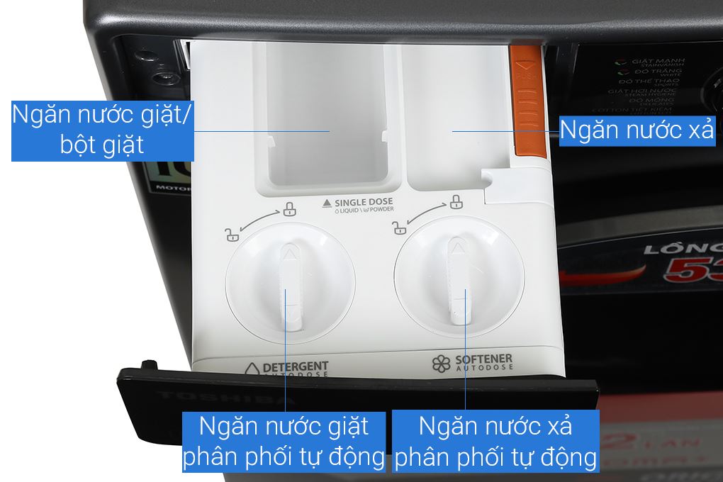 – Tự phân bổ nước giặt và nước xả SenseDose