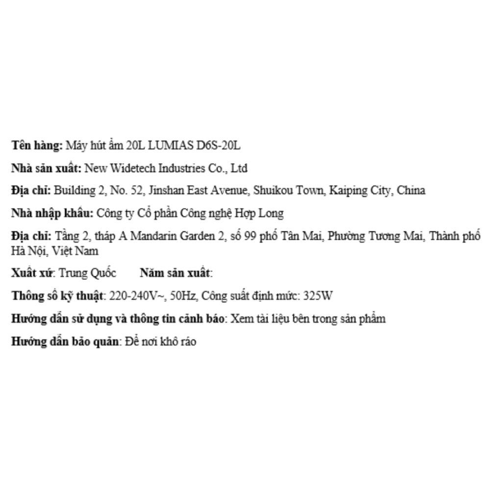Với công suất hút ẩm vượt trội, khả năng lọc không khí bằng ion bạc, điều khiển thông minh qua ứng dụng và hàng loạt tiện ích đi kèm, LUMIAS D6S-20L xứng đáng là lựa chọn hàng đầu cho các gia đình muốn kiểm soát độ ẩm, bảo vệ sức khỏe và nâng cao chất lượng cuộc sống. Thiết bị này phù hợp với mọi không gian dưới 50m², từ căn hộ đến văn phòng, mang lại bầu không khí khô ráo, trong lành mỗi ngày.