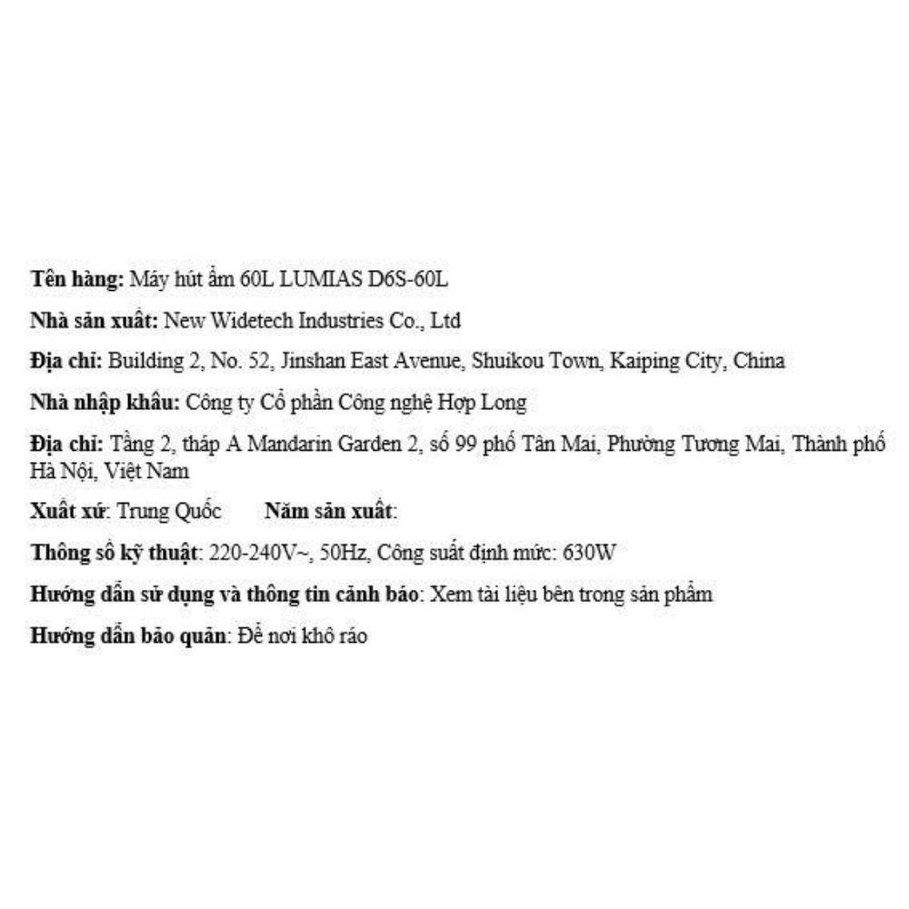 Máy hút ẩm LUMIAS D6S-60L thực sự là một lựa chọn lý tưởng cho các gia đình có không gian rộng lớn hoặc các văn phòng, kho xưởng nhỏ đang tìm kiếm một thiết bị hút ẩm công suất cao. Với khả năng hút ẩm mạnh mẽ lên đến 60 lít/ngày, tích hợp lọc không khí bằng màng HEPA và ion bạc, cùng bình chứa 7.7 lít, khả năng điều khiển thông minh qua ứng dụng, thiết bị này không chỉ mang lại không gian khô thoáng, sạch sẽ mà còn tối ưu hóa sự tiện lợi và an toàn cho người dùng.