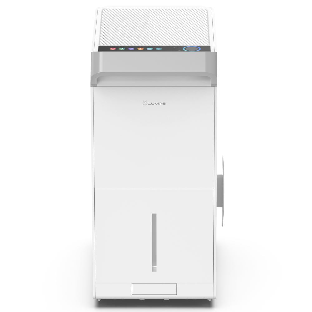 Máy hút ẩm LUMIAS LMD-50L sở hữu thiết kế màu trắng tinh tế, hiện đại với vỏ máy làm từ nhựa ABS cao cấp, bền bỉ và dễ dàng vệ sinh. Sản phẩm có kích thước ngang 28 cm, cao 61.4 cm, sâu 45.4 cm và nặng 19.3 kg, máy được trang bị tay đẩy cùng 4 bánh xe xoay 360° linh hoạt, giúp bạn di chuyển thiết bị đến bất kỳ vị trí nào trong nhà một cách nhẹ nhàng mà không tốn nhiều sức lực.