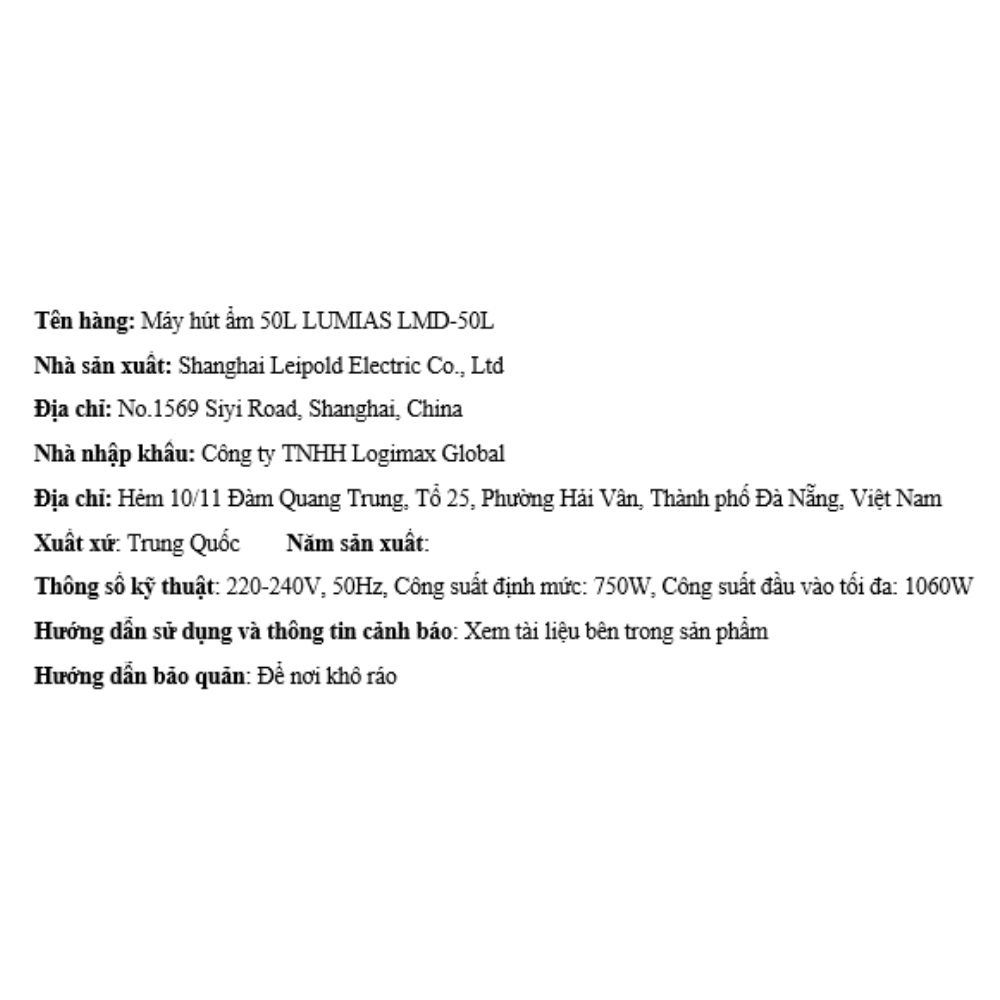 Mùa nồm ẩm không còn là nỗi lo lắng khi bạn sở hữu máy hút ẩm LUMIAS LMD-50L một giải pháp toàn diện mang đến không gian khô thoáng, trong lành và an toàn cho gia đình. Với công suất hút ẩm vượt trội và hàng loạt tính năng thông minh, sản phẩm này xứng đáng là trợ thủ đắc lực trong mọi ngôi nhà hiện đại.
