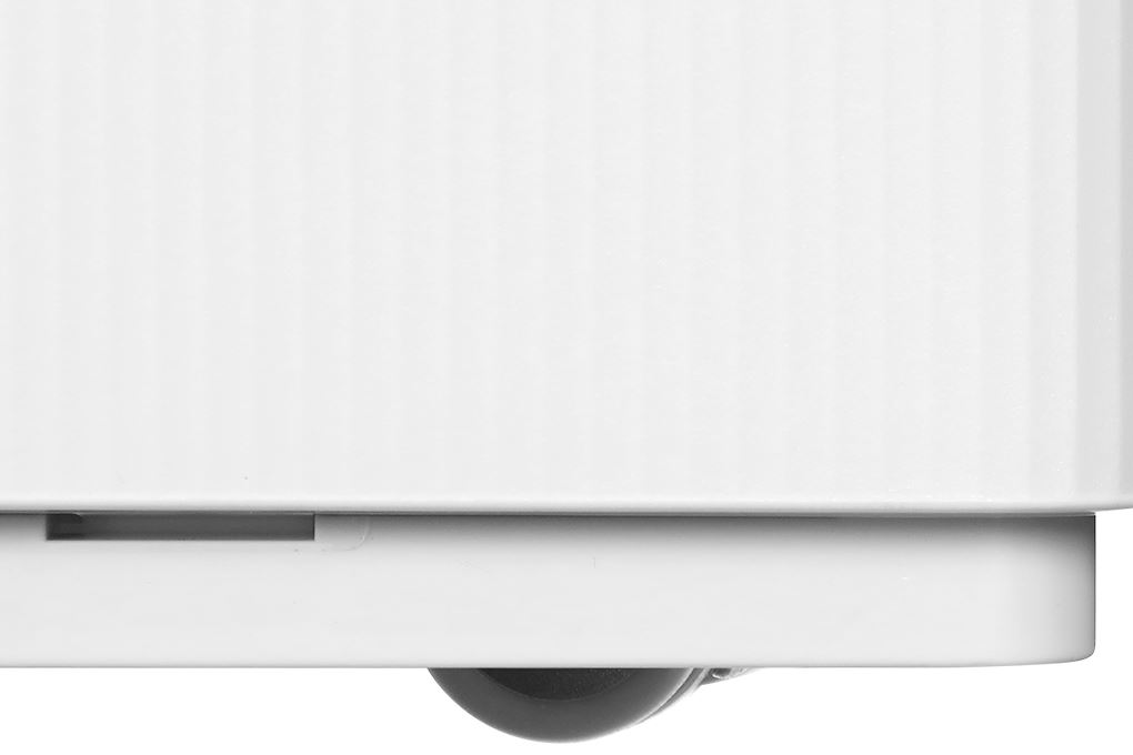 Phần bánh xe di chuyển linh hoạt cho phép kéo máy qua lại giữa các phòng dễ dàng; vòng bi xoay trơn và lớp bọc cao su chống trượt giúp giảm tiếng ồn, bảo vệ bề mặt sàn. Tay cầm lõm sâu phía trên thân máy được thiết kế chắc chắn, giúp nâng đỡ an toàn và thuận tiện khi cần di chuyển.