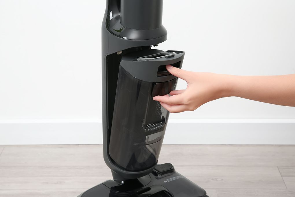 Đế sạc đi kèm vừa có chức năng sạc pin, vừa hỗ trợ giặt con lăn bằng nước nóng và sấy khô khí nóng nên bạn không cần làm sạch thủ công. Sau mỗi lần sử dụng, bạn có thể cho máy tự vệ sinh bằng công nghệ FlashDry – giặt con lăn bằng nước nóng và sấy khô khí nóng ở mức nhiệt 85°C – hỗ trợ ngăn ngừa ẩm mốc và mùi khó chịu phát sinh.