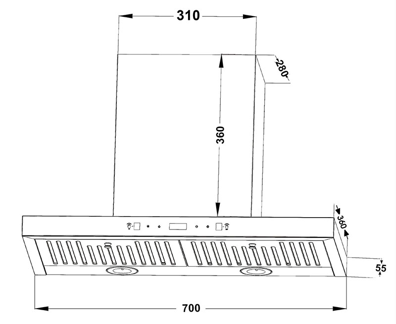 | Kích thước hút mùi (rộng x cao x sâu) | 700x415x365mm |