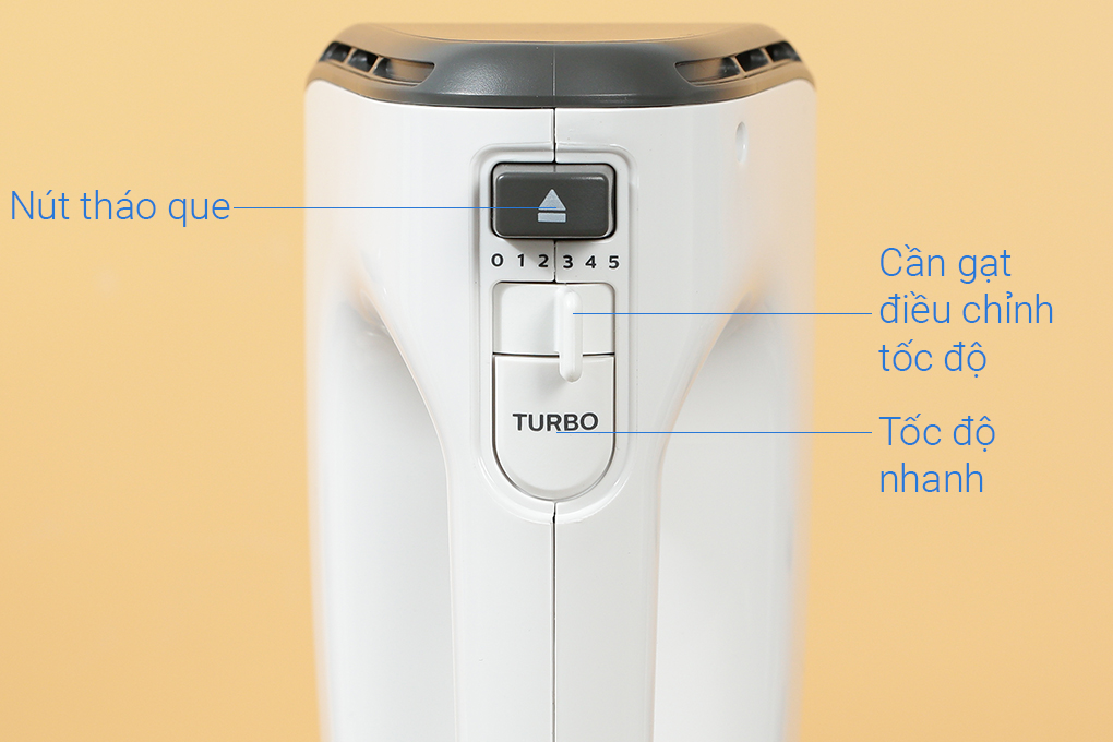 Bảng điều khiển: Nút nhấn tháo que Nút gạt chỉnh tốc độ