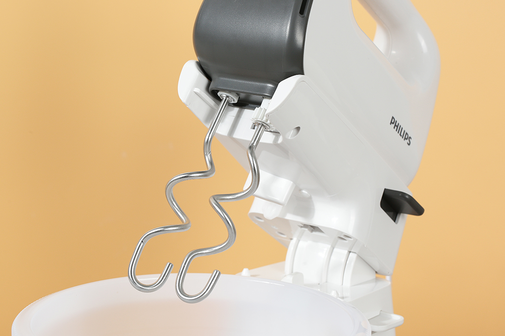 – Phụ kiện đi kèm gồm 2 que đánh trứng và 2 que đánh bột bằng thép không gỉ bền bỉ, dễ dàng tháo lắp.