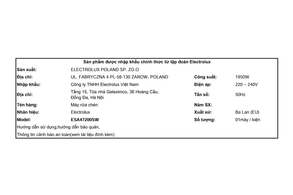 Hãng: Electrolux.