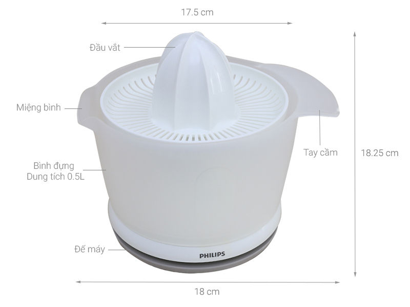 Với dung tích 0.5 lít, bạn có thể vắt liên tục 4 – 5 quả cam mà không phải tốn công tháo lưới lọc để rót nước ép ra cốc uống nhiều lần.