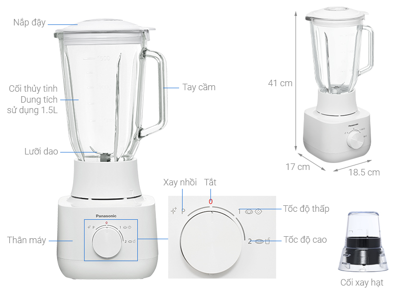 Máy xay sinh tố đa năng Panasonic MX-EG5311WRA là một thiết bị gia dụng cần thiết cho gia đình, với cối thủy tinh dung tích 1.5 lít và cối xay hạt đi kèm, phù hợp để chế biến đa dạng các món như sinh tố, súp và xay gia vị.