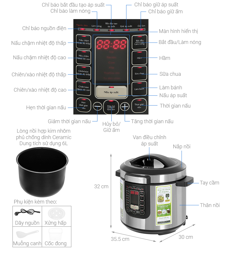 – Phụ kiện đi kèm: xửng hấp, cốc đong, muỗng canh.