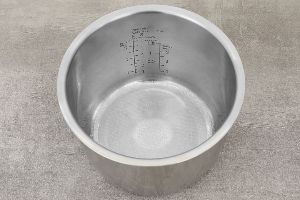 Lòng nồi Panasonic SR-HNS151WRA dày 1.612 mm chắc chắn, được làm từ chất liệu inox 304 cao cấp chống gỉ sét và trầy xước, kết hợp công nghệ Zero Coating không tráng phủ vừa an toàn cho sức khỏe, vừa đảm bảo độ bền lâu dài cho sản phẩm.