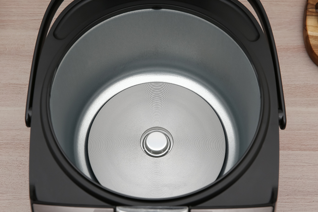 – Lòng nồi hợp kim nhôm 5 lớp phủ chống dính Daikin bền bỉ, an toàn, hạn chế dính cháy, dễ vệ sinh, nấu cơm chín đều, thơm ngon.