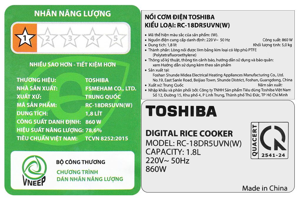Với dung tích khá lớn, hoạt động với công suất 860W kết hợp các công nghệ nấu hiện đại, có 12 chương trình cài đặt sẵn, sản phẩm nồi cơm điện tử Toshiba 1.8 lít RC-18DR5UVN(W) sẽ là trợ thủ đắc lực giúp bạn nấu những bữa cơm gia đình thơm ngon.