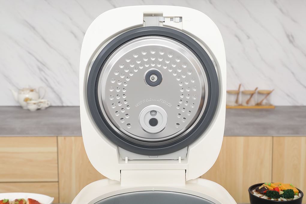 – Phần nắp trong dạng tổ ong ngăn hơi nước rơi ngược vào nồi, giúp cơm không bị nhão, có thể tháo rời thuận tiện vệ sinh.
