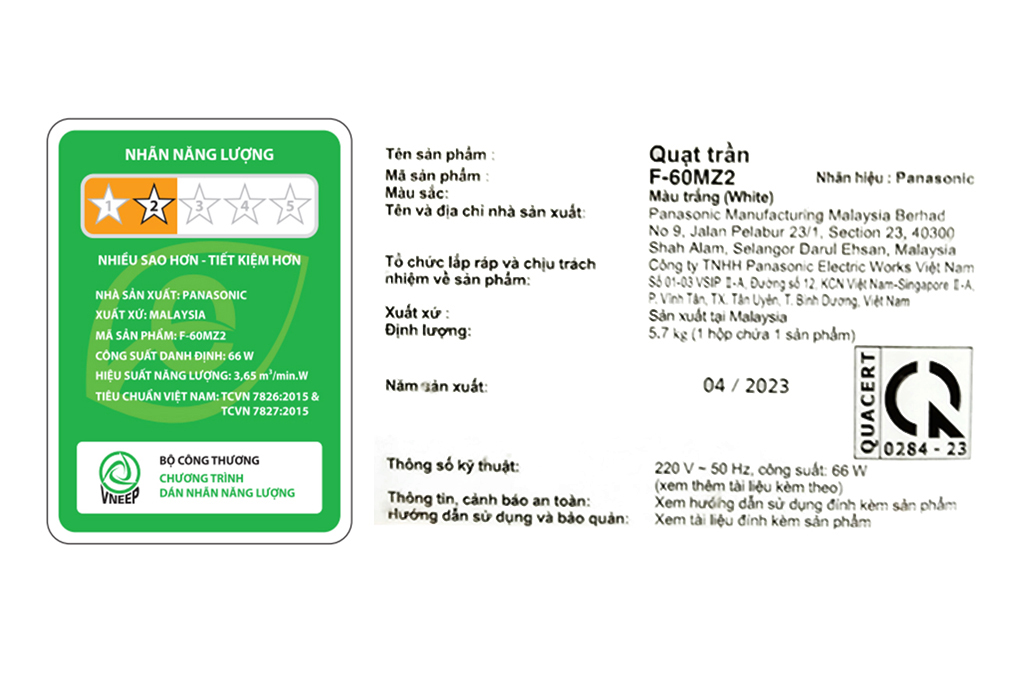 Sản phẩm thuộc thương hiệu Panasonic – Nhật Bản uy tín, sản xuất tại Malaysia đảm bảo chất lượng.