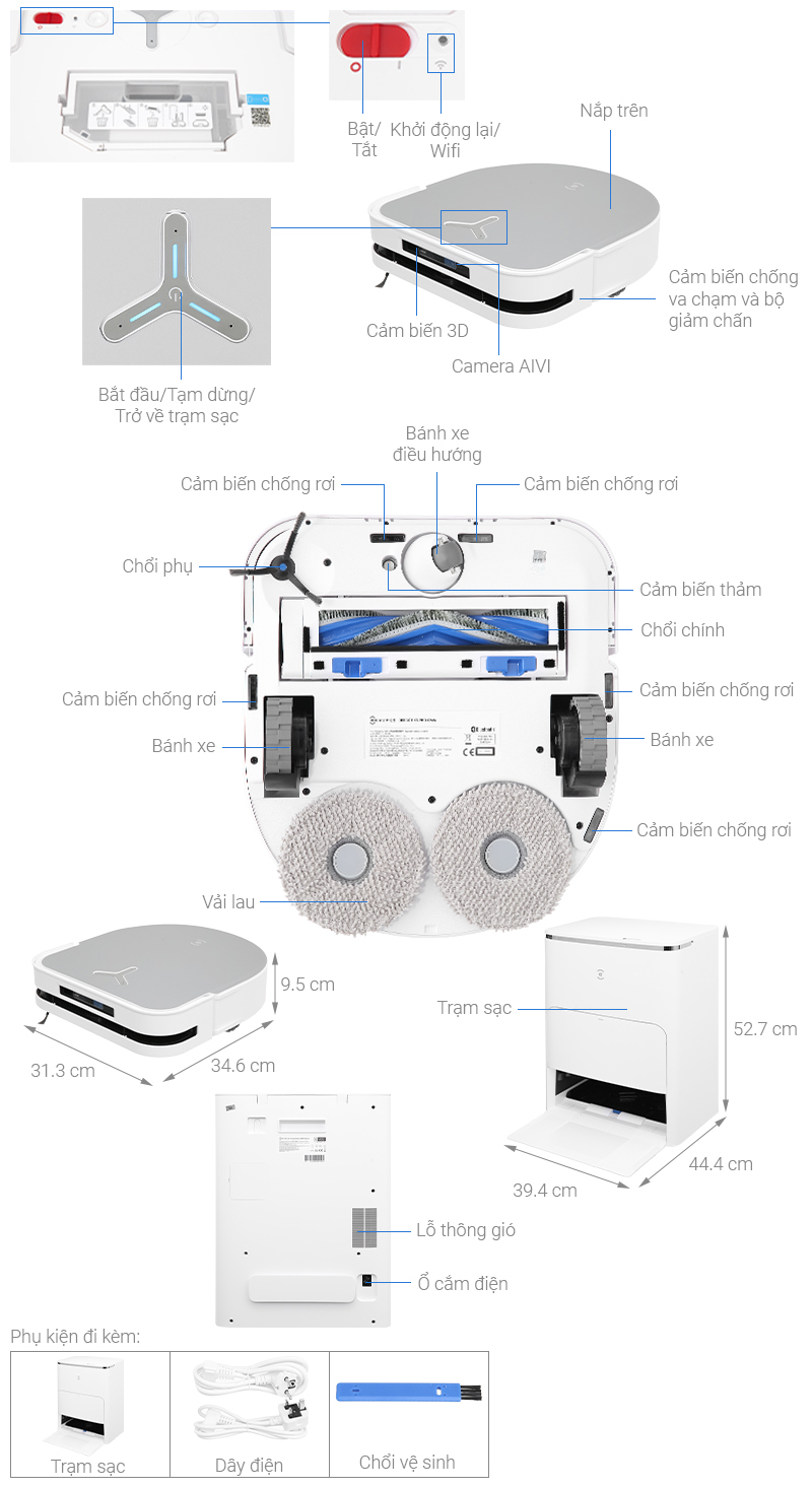 – Ngoài ra, trạm sạc của robot còn được trang bị bình chứa nước sạch 5 lít, bình chứa nước bẩn 5 lít và túi chứa bụi với dung tích lớn 3.4 lít cho phép người dùng rảnh tay đến 90 ngày.