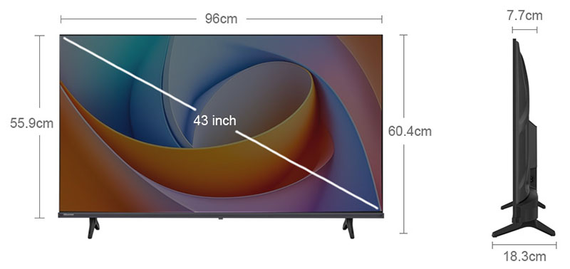 Kích thước không chân, treo tường: Ngang 96 cm – Cao 55.9 cm – Dày 7.7 cm