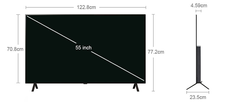 Kích thước không chân, treo tường: Ngang 122.8 cm – Cao 70.8 cm – Dày 4.59 cm