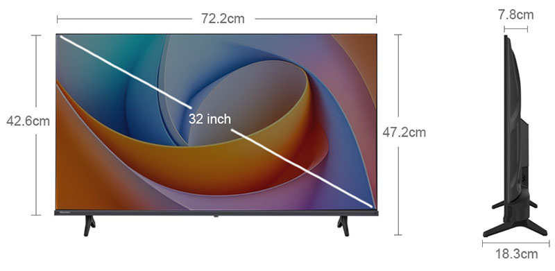 Kích thước không chân, treo tường: Ngang 72.2 cm – Cao 42.6 cm – Dày 7.8 cm