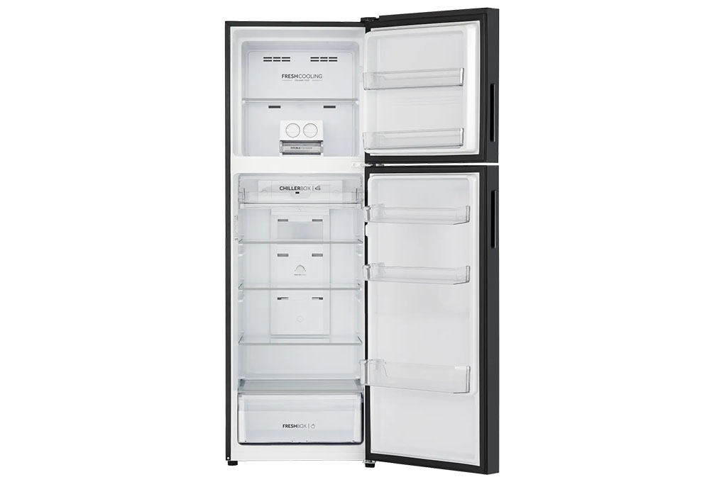 AQR-T410FA(GB) gây ấn tượng ngay từ cái nhìn đầu tiên nhờ thiết kế phẳng tinh tế và mặt gương đen bóng bẩy, mang lại vẻ hiện đại và đẳng cấp cho căn bếp. Tay nắm ẩn được thiết kế thông minh, vừa giúp mở tủ thuận tiện, vừa tạo cảm giác liền mạch, tối giản. Bố cục ngăn đá trên – ngăn mát dưới quen thuộc, phù hợp với thói quen sử dụng của đa số gia đình Việt, đồng thời tối ưu không gian lưu trữ thực phẩm.