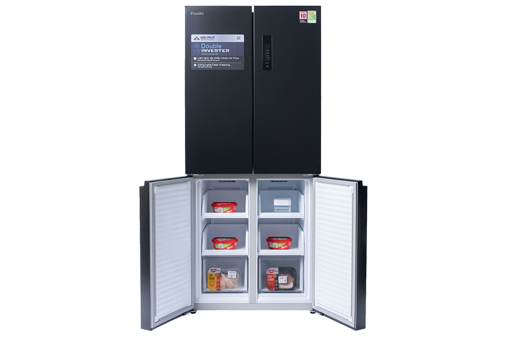 Tủ lạnh Funiki Multi Door 415 lít HR M8415SB là lựa chọn lý tưởng cho gia đình hiện đại nhờ thiết kế 4 cánh tiện dụng, gam màu đen sang trọng, công nghệ Double Inverter tiết kiệm điện, Multi Air Flow làm lạnh đồng đều, cùng bộ lọc than hoạt tính kháng khuẩn. Sản phẩm giúp bảo quản thực phẩm tươi ngon lâu dài, giảm thời gian mua sắm và nâng cao trải nghiệm sử dụng trong không gian bếp.