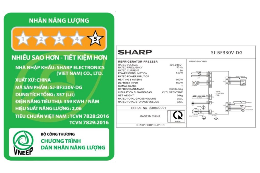 Công suất tiêu thụ công bố theo TCVN: 359 kWh/năm