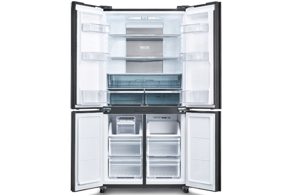 Tủ lạnh 4 cánh được trang bị bảng điều khiển điện tử với màn hình dễ sử dụng cùng các tính năng chuông báo cửa và cấp đông nhanh, mang lại sự tiện lợi và tiết kiệm năng lượng. Đèn LED chiếu sáng giúp bạn dễ dàng quan sát thực phẩm bên trong ngay cả khi trời tối.