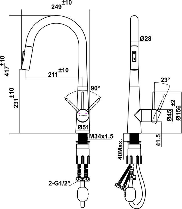 Vòi rửa bát Hafele HT21 CH1P254 (577.55.200)